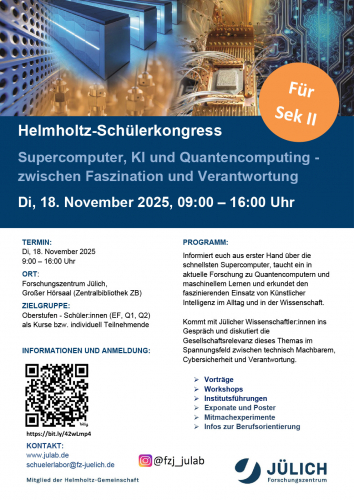 Informiert euch aus erster Hand über die schnellsten Supercomputer, taucht ein in aktuelle Forschung zu Quantencomputern und maschinellem Lernen und erkundet den faszinierenden Einsatz von Künstlicher Intelligenz im Alltag und in der Wissenschaft.